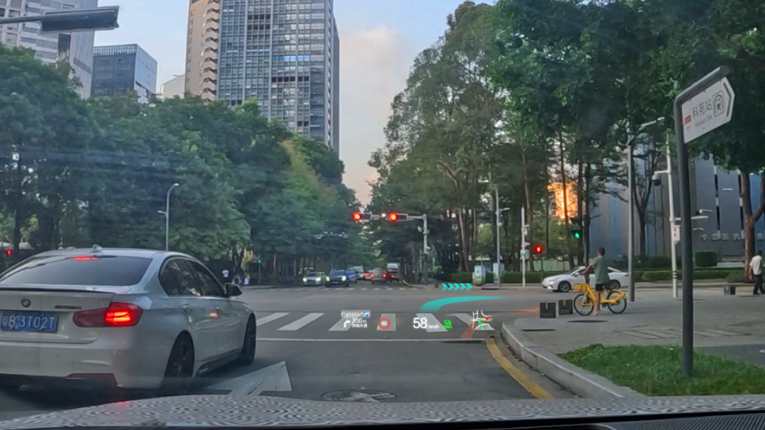 基于復雜變量環(huán)境完成大尺寸、小體積的光機設(shè)計,并采用多數(shù)據(jù)融合算法實現(xiàn)導航、ADAS等輔助駕駛信息在真實路況上的疊加、融合顯示,提升駕駛安全性的同時給予更酷炫、更智能的駕駛體驗。